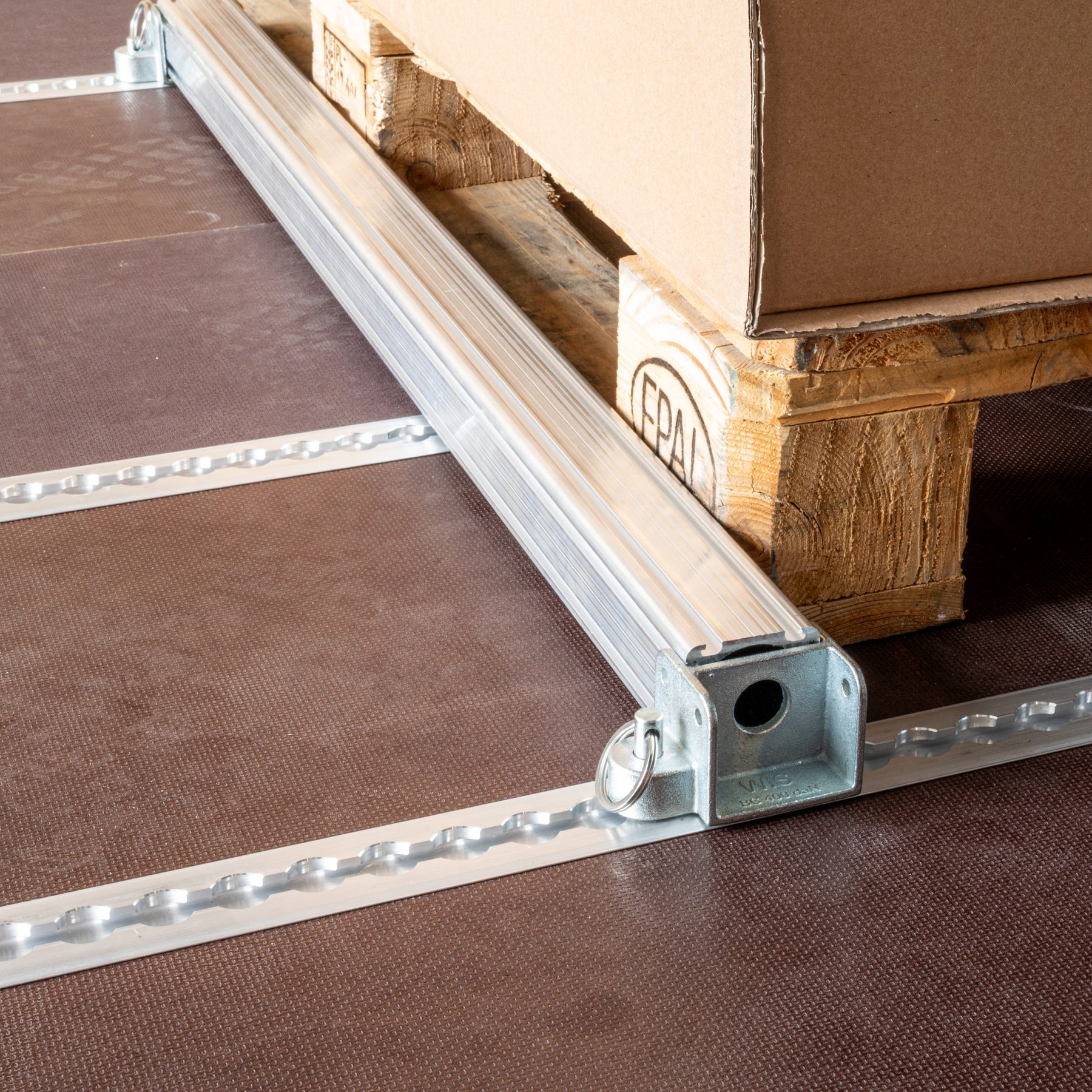 Wer großes sicher transportieren möchte, der benötigt eine Ladungssicherung, die flexibel hält. Mit den Airlineschienen Fittings für Palettenstopp ist das individuell möglich. Die Fittings einfach in deine Airlineschiene stecken und mit einem Vierkant aus Aluminium oder mit einem Holzprofil absichern. Es ist auch möglich einen Sperrbalken zu verwenden, der am Enden einen 19 mm Zapfen hat. Das funktioniert auch, wenn du eine zweite Ladungsebene benötigst – hierfür steckt du einfach eine zweite Zurrschiene dazwischen.